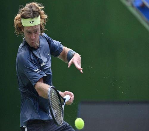 10月4日,上海大师赛,卢布列夫击球时甩出汗水。(图/视觉中国)