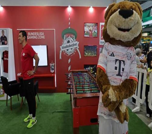 在人群中,拜仁传奇球星卢西奥也在其中,他代表拜仁和德甲联赛参加此次活动。他在德甲联赛的展位上与球迷见面,签名并传播巴西-巴伐利亚文化交融的精神。