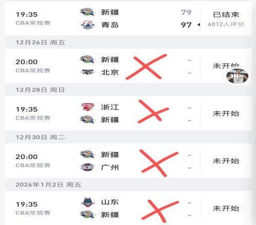 CBA常规赛第五轮,新疆队坐镇主场对阵青岛队,双方经过四节比拼,最终,新疆队以79-97惨败给青岛队18分。如此一来,新疆队前五轮成绩为2胜3负,排在CBA积分榜第十二名。
